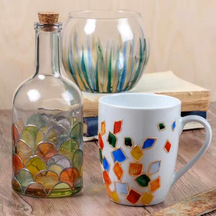 Andre ting du kan lage er handlenett med tekstiltusjer eller tekstilmaling. Glass- og porselensmaling er en kreativ måte å lage et minneverdig krus eller en vase.