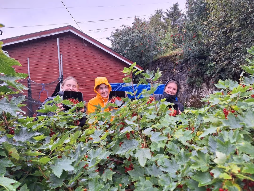 Her skal vi ut i naturen! Å høste av naturen er både bærekraftig og sunt. Vi tar vare på bær i hager og grønnsaker som sorteres bort. Vi høster vekster i skogen og lærer å tilberede råvarene sammen med kokkene på kjøkkenet - til glede for alle på skolen.